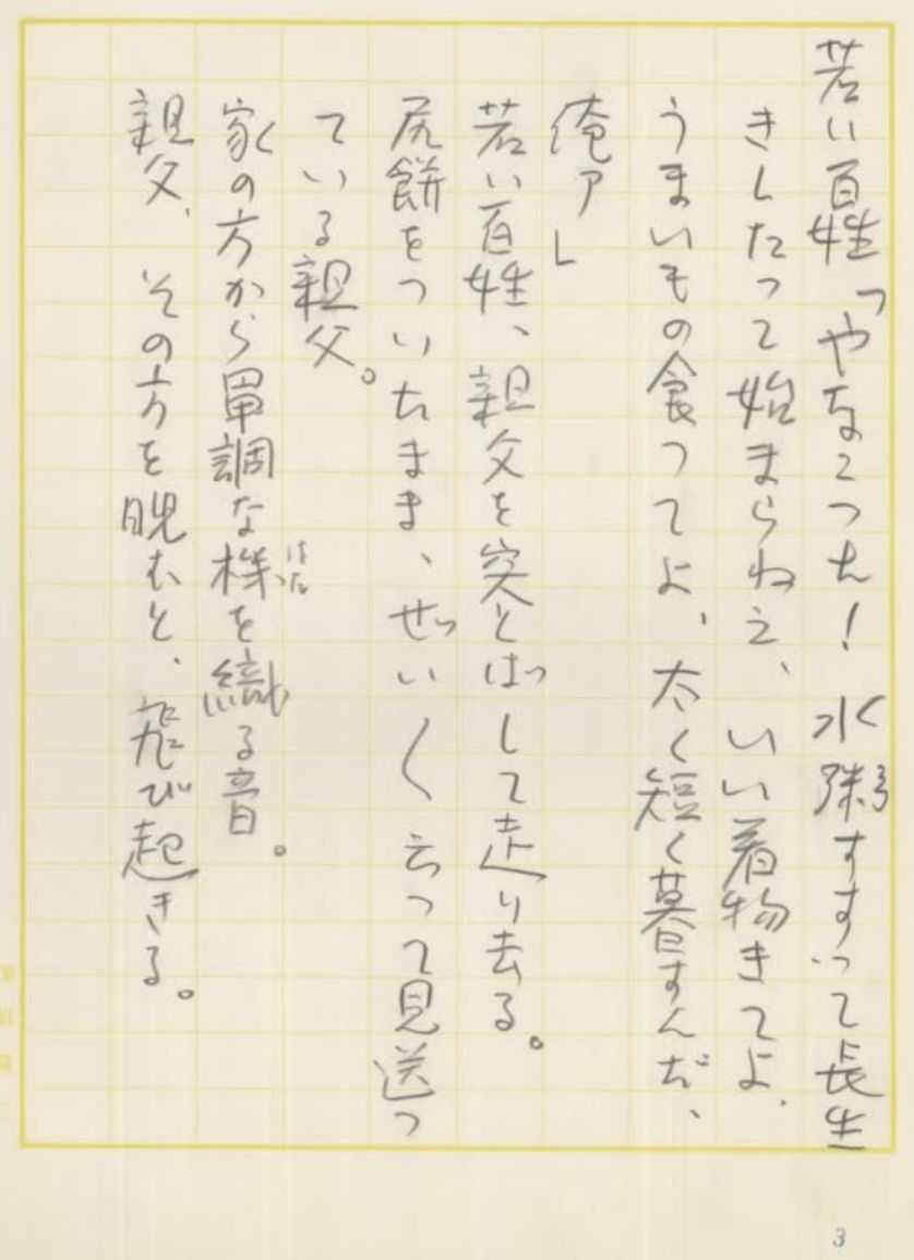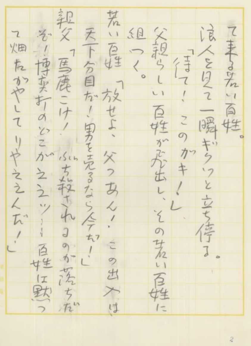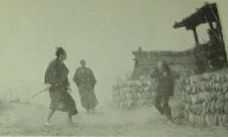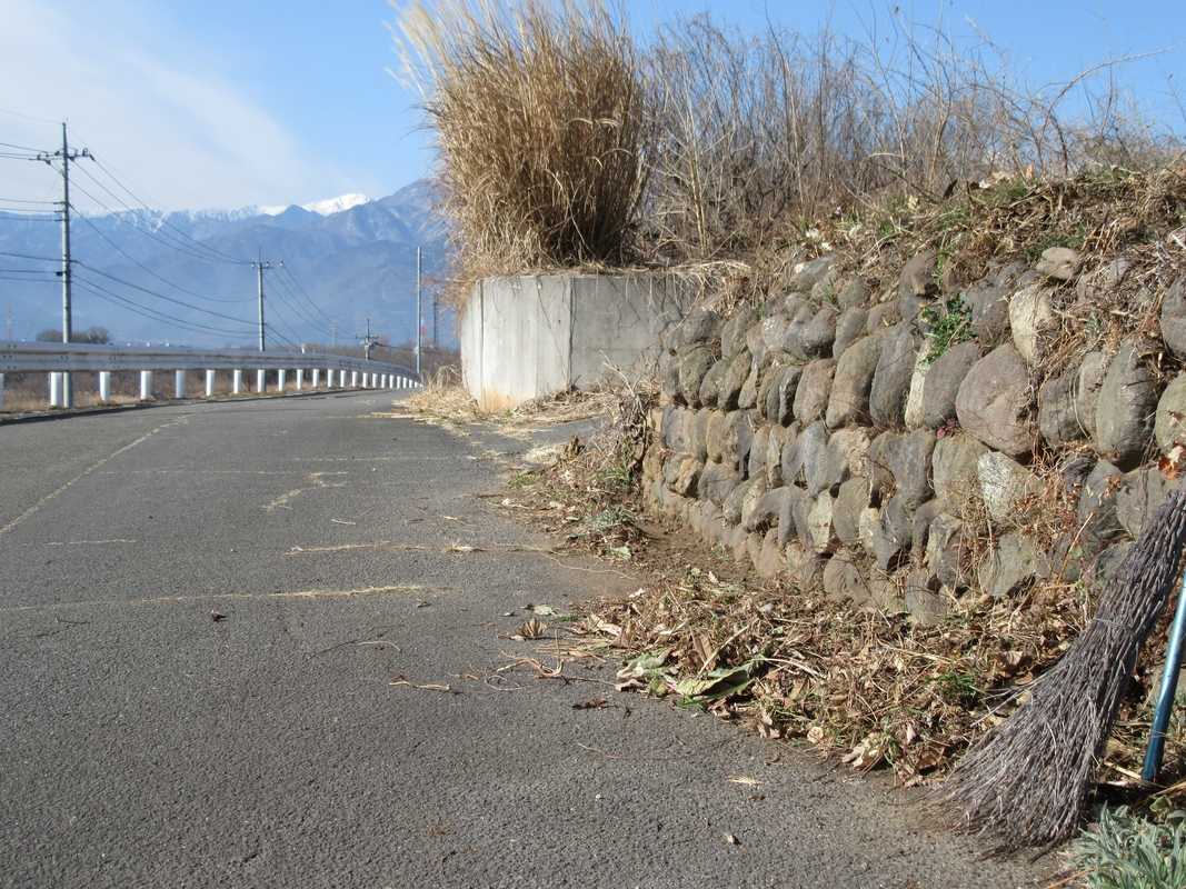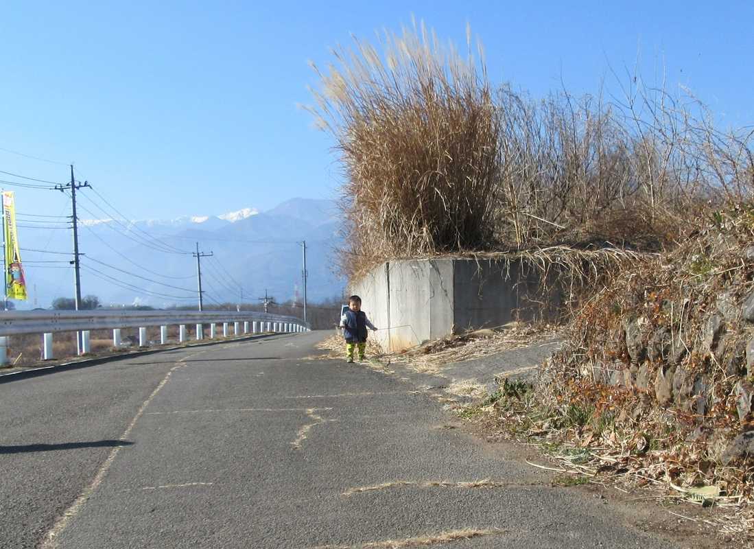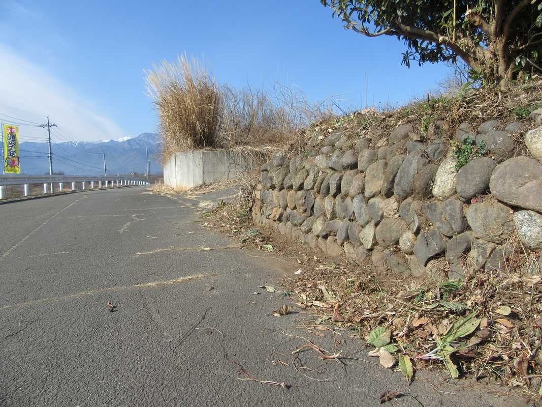 (その1)の場所に続いて映画では連続して見えますが、この百姓親子の喧嘩の場所は同じ甲斐市でも東へ10キロ程離れた所で撮影されました。右手前の石垣が当時のままです。コンクリートになってしまった奥の石垣との間を百姓の親父さんが駆け上がっていくのですが直後の家のシーンはおそらく東宝撮影所のセットと思われます。夏木陽介さんの若い事!
