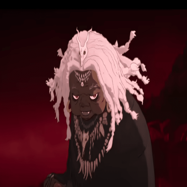 冒頭、絶望して血の海に沈むスカーレットが、クローディアスの名前を出すと、老婆は背を向けたまま言う。「待て、その男ならまだここにいる。まだ虚無にならずにどこかで笑っておるわ」と、スカーレットにさらなる復讐を煽るかのように振舞う。