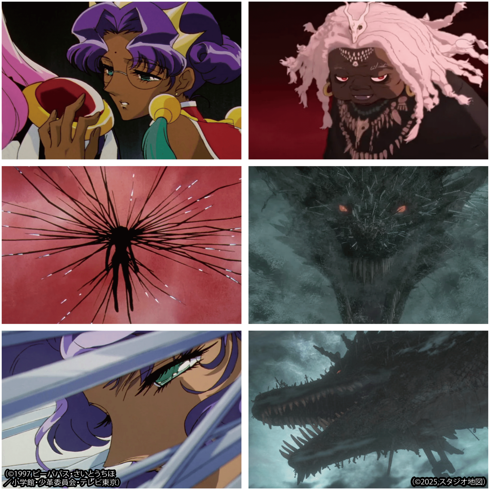 ここまで来れば、細田ファンなら本作の老婆=ドラゴンのイメージの原形が、『ウテナ』の褐色の肌もつヒロインにして魔女、100万本の剣に貫かれる姫宮アンシーにあることに気づかれたかもしれない。