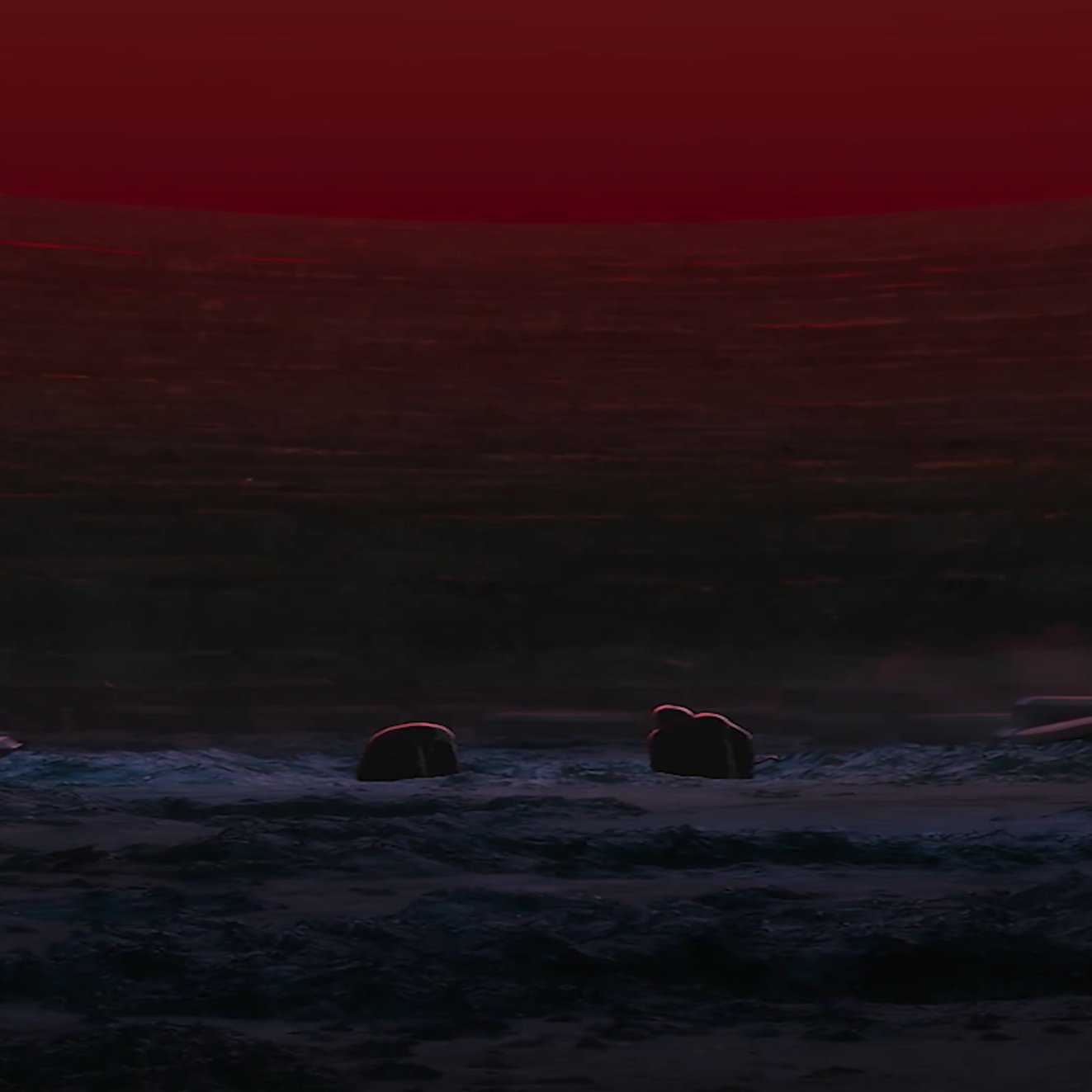 途中夕陽も描かれるから紛らわしいが基本的にエクソダスは画面上右から左への移動として描かれるので分かりやすい。